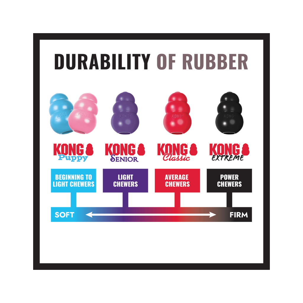 De meest onverslijtbare versie van ons originele KONG speeltje. De ultrasterke, ultra-onverslijtbare, zwarte rubberen samenstelling wordt aanbevolen voor de allersterkste kauwers.