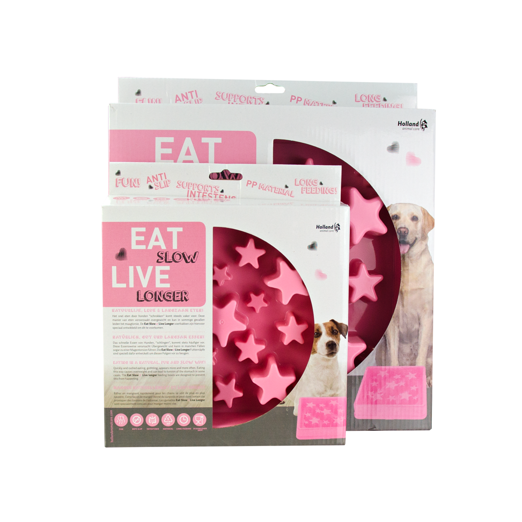 Met de Eat Slow Live Longer Star slowfeeder behoort schrokken tot het verleden! Deze voerbak met een sterrenpatroon zorgt ervoor dat een hond of kat lastiger bij het droogvoer kan, waardoor het huisdier minder grote happen neemt, langzamer eet en beter kauwt. De slowfeeder is voorzien van anti-slip voetjes aan de onderzijde en is vaatwasserbestendig.