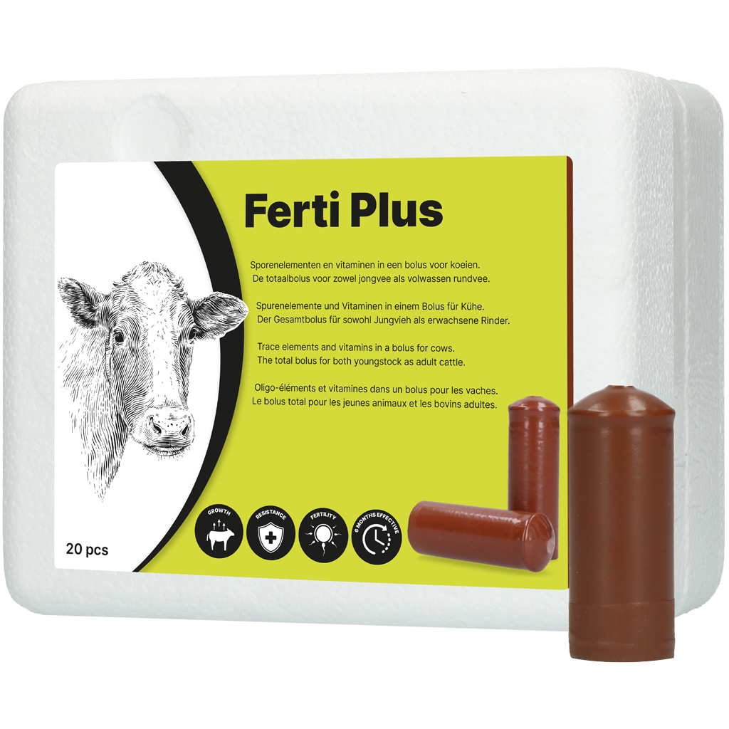 Als u op zoek bent naar een effectieve manier om de groei, vruchtbaarheid en gezondheid van uw rundvee te ondersteunen, dan is de Ferti Plus bolus de perfecte keuze. De bolus is een kosteneffectieve oplossing die zichzelf terug verdient. Dus gaat uw jongvee op stal of in de wei? De Ferti Plus bolus hoort erbij!