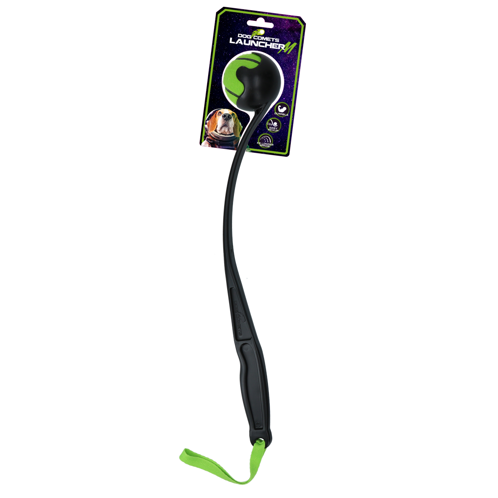 Maak je klaar voor een intergalactisch avontuur met deze ultieme tennisbalwerper! Deze launcher laat honden rennen en springen met meer enthousiasme dan ooit tevoren. Met één worp gooi je de bal moeiteloos meters ver weg, zelfs tot 3x verder dan met een standaard launcher. Ideaal voor het gezond en fit houden van honden! De werper is gemaakt van sterk en duurzaam materiaal, waardoor deze jarenlang meegaat. Dankzij de praktische vorm kunnen ballen eenvoudig van de grond opgepakt worden en direct weer weggegooid worden. Inclusief een Dog Comets tennisbal.