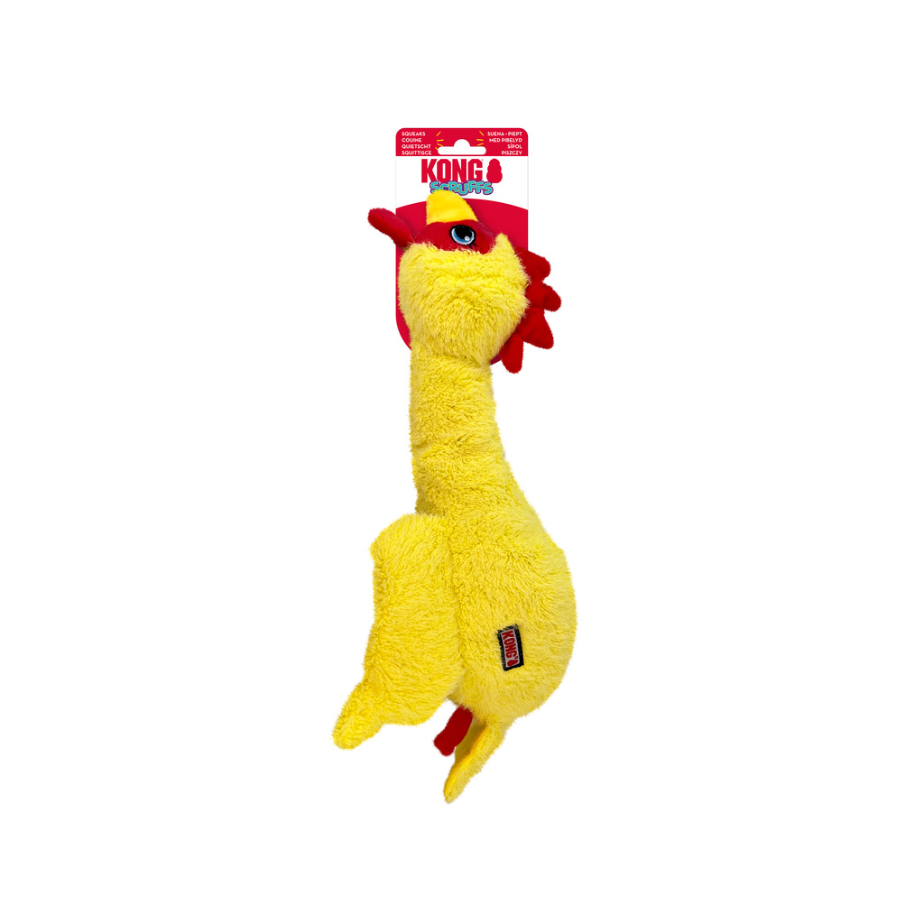 Met KONG Scruffs hoeven honden niet ver te reiken om lang te kunnen spelen! De langwerpige nekken van de Scruffs figuurtjes zijn gevuld met een super-squeaker met unieke textuur om honden optimaal te laten spelen, terwijl het zachte pluche van het lijf ideaal is voor knuffeltijd. Deze lange nekken zijn ook het perfecte handvat voor honden die hun speelgoed graag ronddragen.