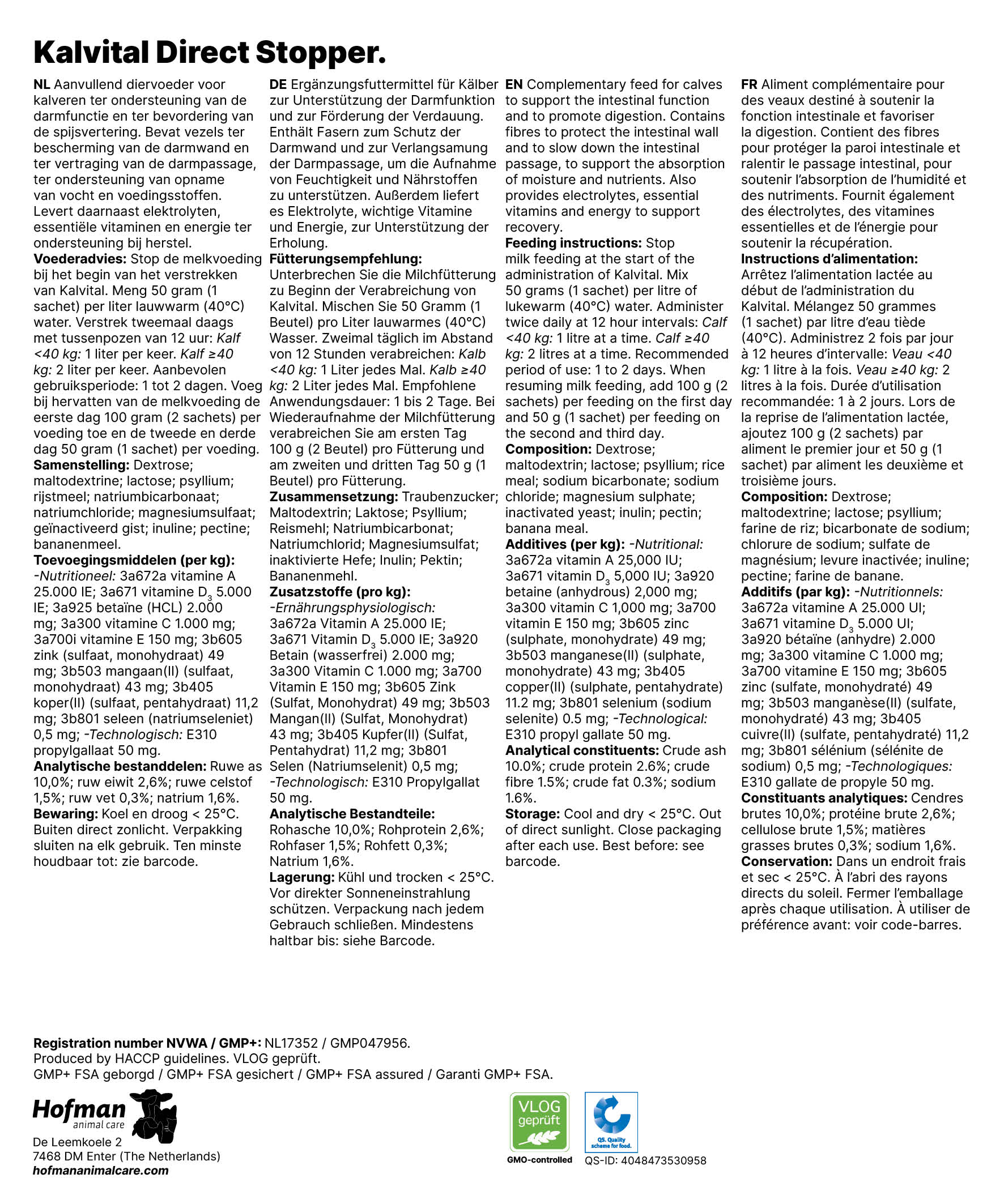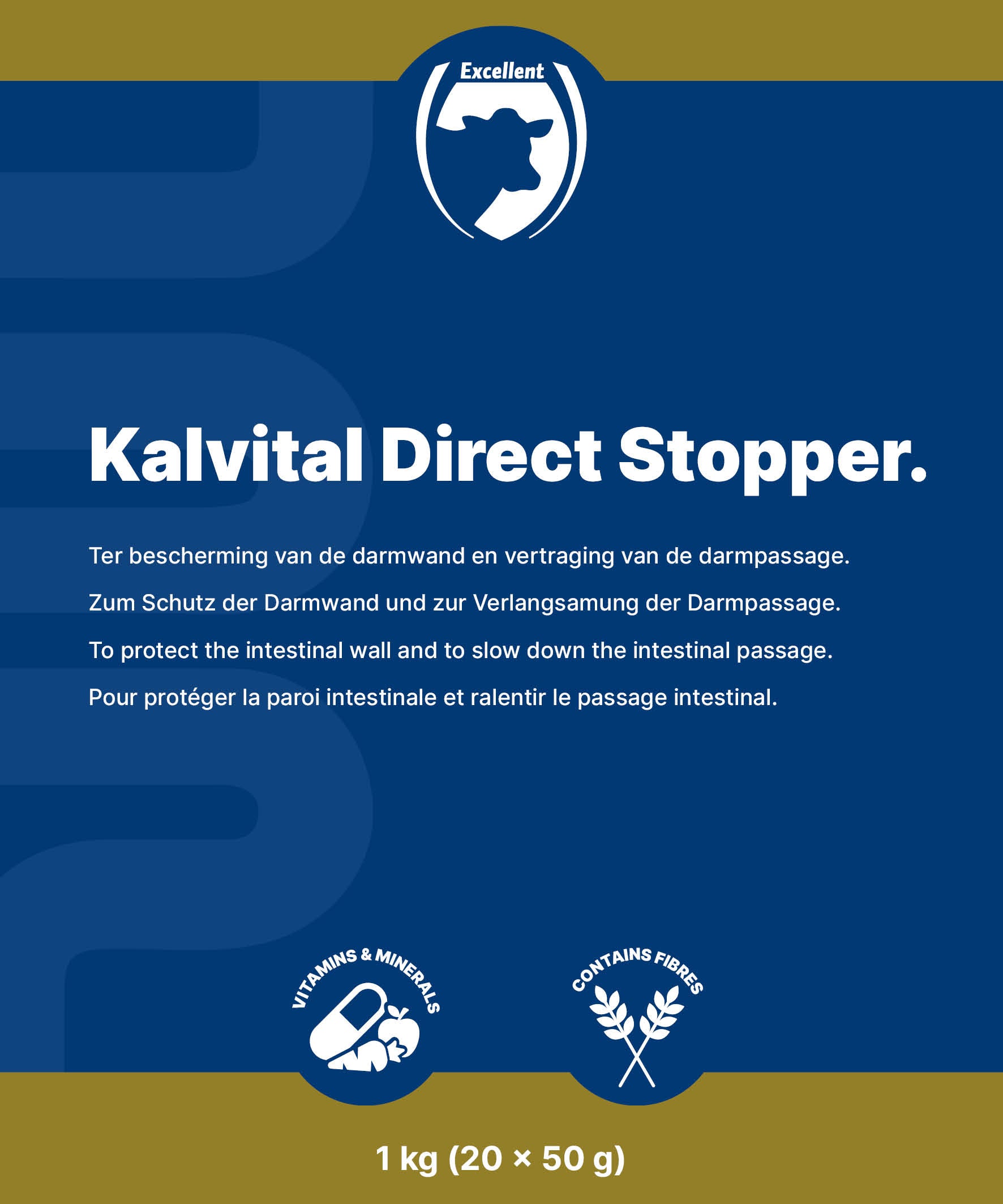 Excellent Kalvital Direct Stop is een aanvullend diervoeder dat speciaal ontwikkeld is om kalveren te ondersteunen bij darmproblemen en spijsverteringsstoornissen. De formule bevat vezels die de darmwand beschermen en de darmpassage vertragen, zodat vocht en voedingsstoffen beter kunnen worden opgenomen. Daarnaast levert het product elektrolyten, essentiële vitaminen en energie om het herstelproces te bevorderen. Het resultaat is een snelle ondersteuning van de spijsvertering en een betere vochtbalans. Een praktisch hulpmiddel voor veehouders om kalveren effectief en doelgericht te ondersteunen tijdens kwetsbare periodes.