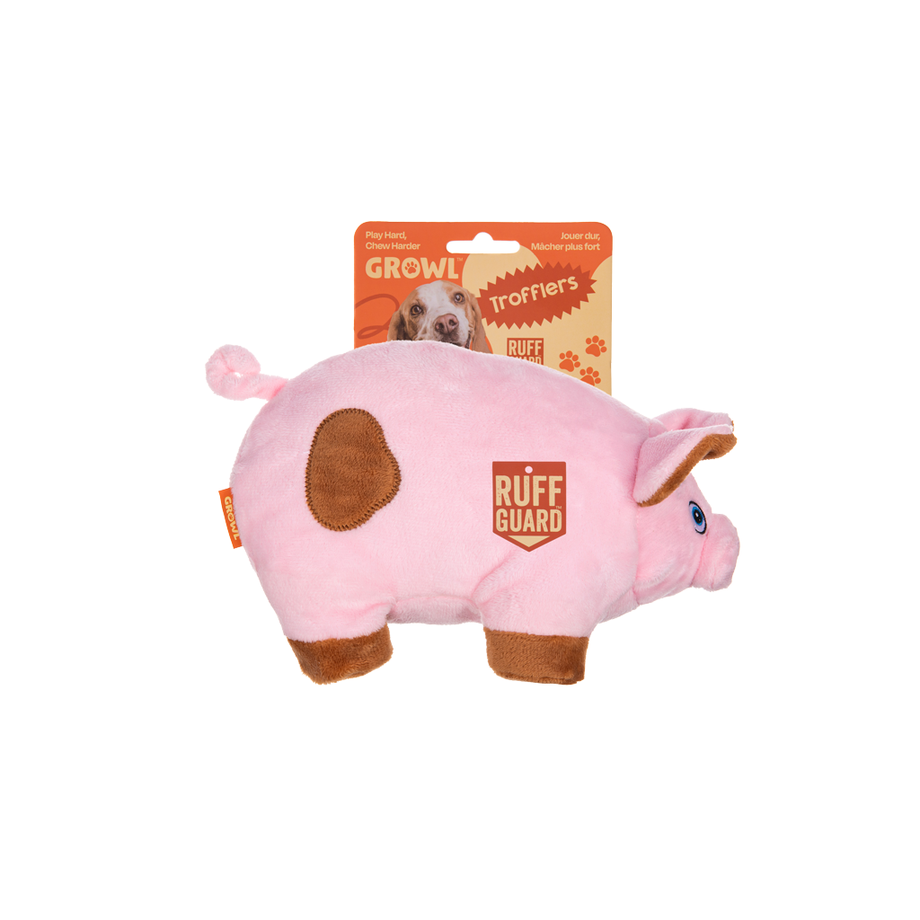 De Growl Trofflers zijn zachte maar stevige pluche hondenspeeltjes die zorgen voor uren speel- en knuffelplezier. Elk speeltje bevat een grote pieper, waardoor honden steeds opnieuw worden uitgedaagd om te spelen, te ontdekken en te knabbelen.