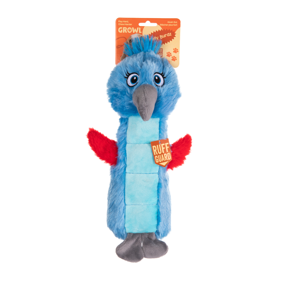 De Growl Belly Burdz combineren luxueus pluche met een stevige constructie en een speels design. Elk Belly Burdz-speeltje heeft een groot extern piepmatje en een extra grote pieper binnenin, waardoor het speelgoed uitdagend blijft en zorgt voor een rijke, interactieve speelervaring.