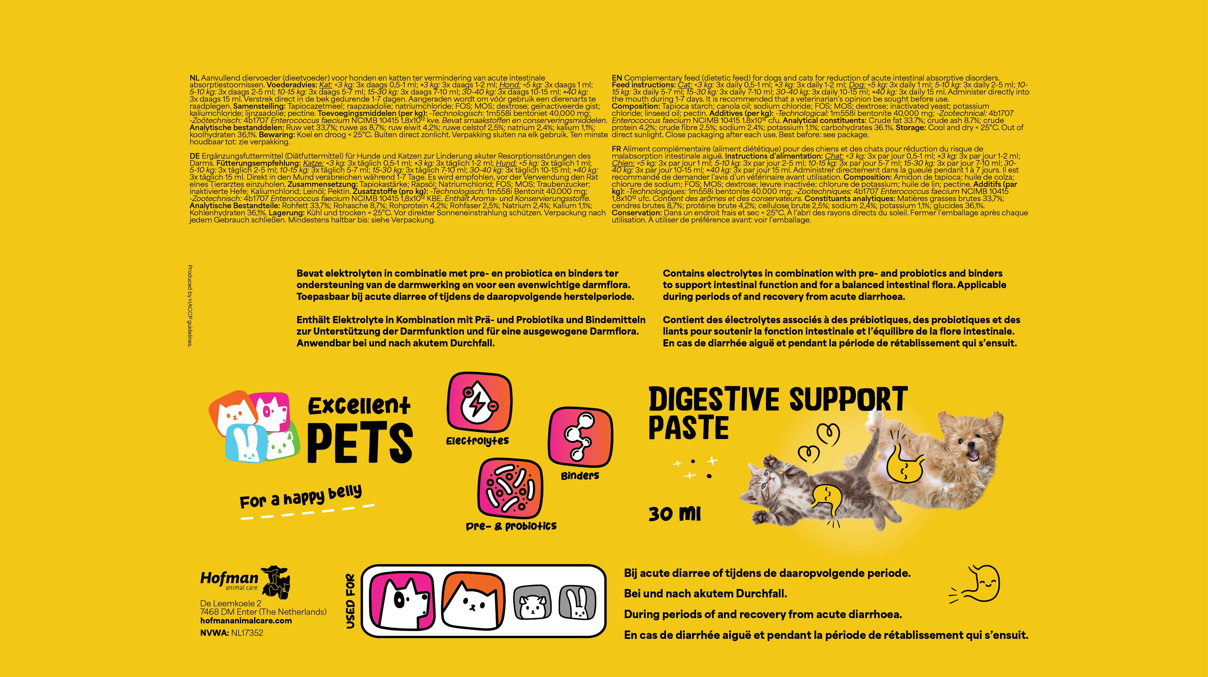 Excellent Pets Digestive Support is speciaal ontwikkeld voor huisdieren die last hebben van acute diarree of die zich in de belangrijke herstelperiode daarna bevinden.