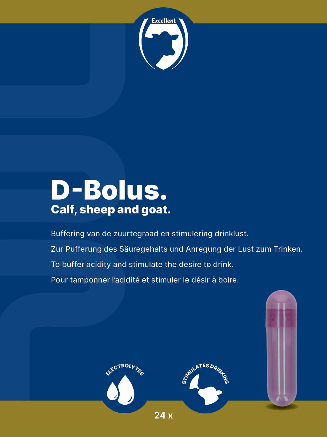 Stimulering drinklust bij diarree: Bij de eerste tekenen van spijsverteringsstoornissen dient men 1 D-Bolus per kalf te geven en vervolgens 1 D-Bolus voor elke voeding gedurende 1-2 dagen.
