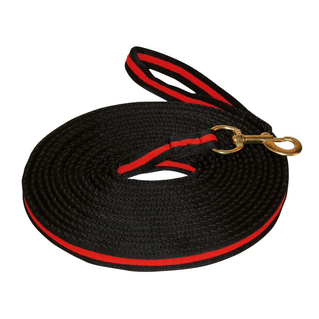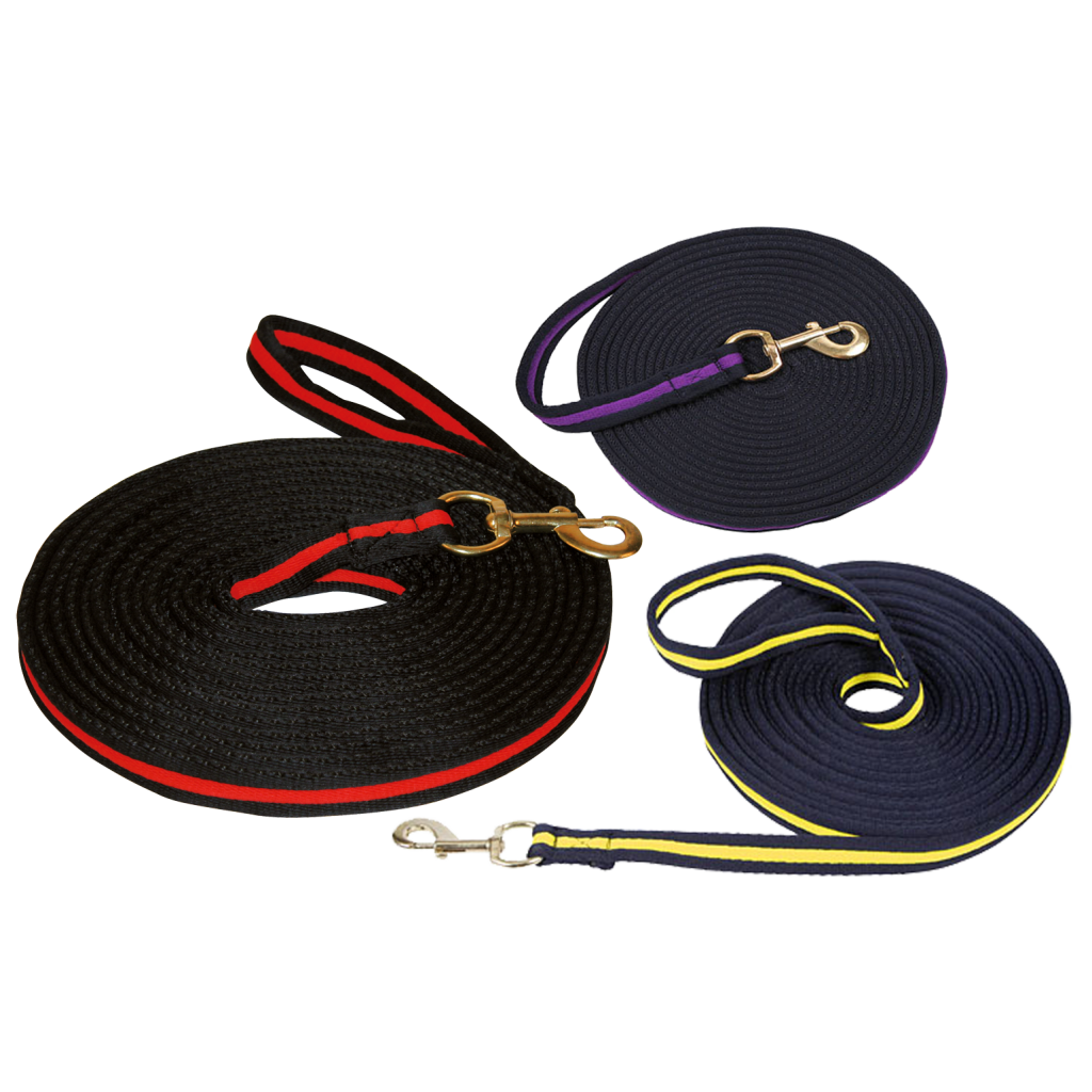 Deze longeerlijn is gemaakt van extra zachte kwaliteit (soft grip) en ligt hierdoor zeer comfortabel in de hand. Aan het einde is de lijn voorzien van een roterende karabijnhaak.